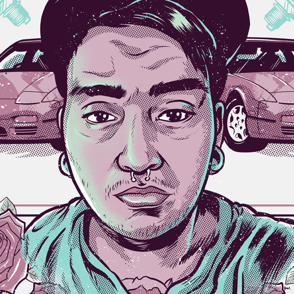 A commemorative shirt/poster for a member of Twisted Drift Automotiev club. The man pictured, Cody Brown, died suddenly a couple years back, and he meant a lot to the crew.